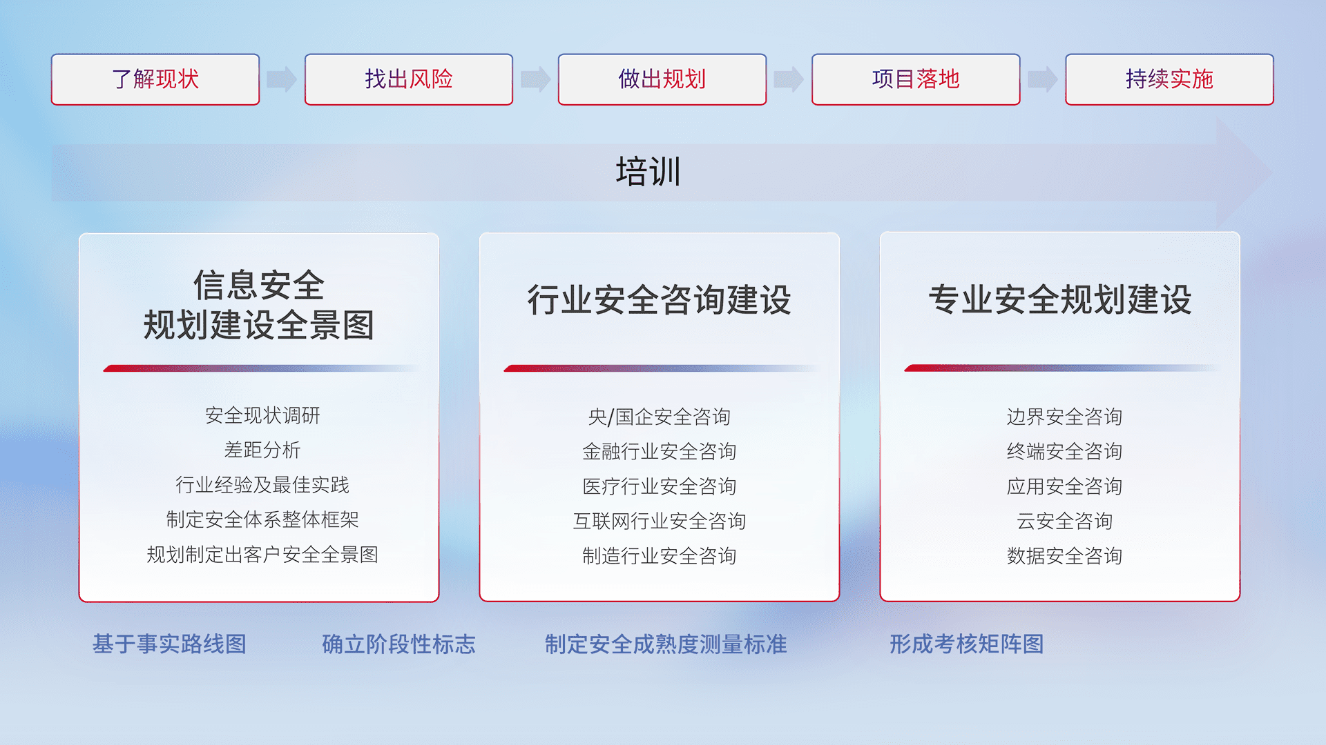 梳理客户信息安全现状调研、、、差距分析结果,,结合行业先进经验及最佳实践,,制订客户的信息安全管控体系总结架构,,,最终形成一个完整的客户信息安全规划与建设的全景图。。