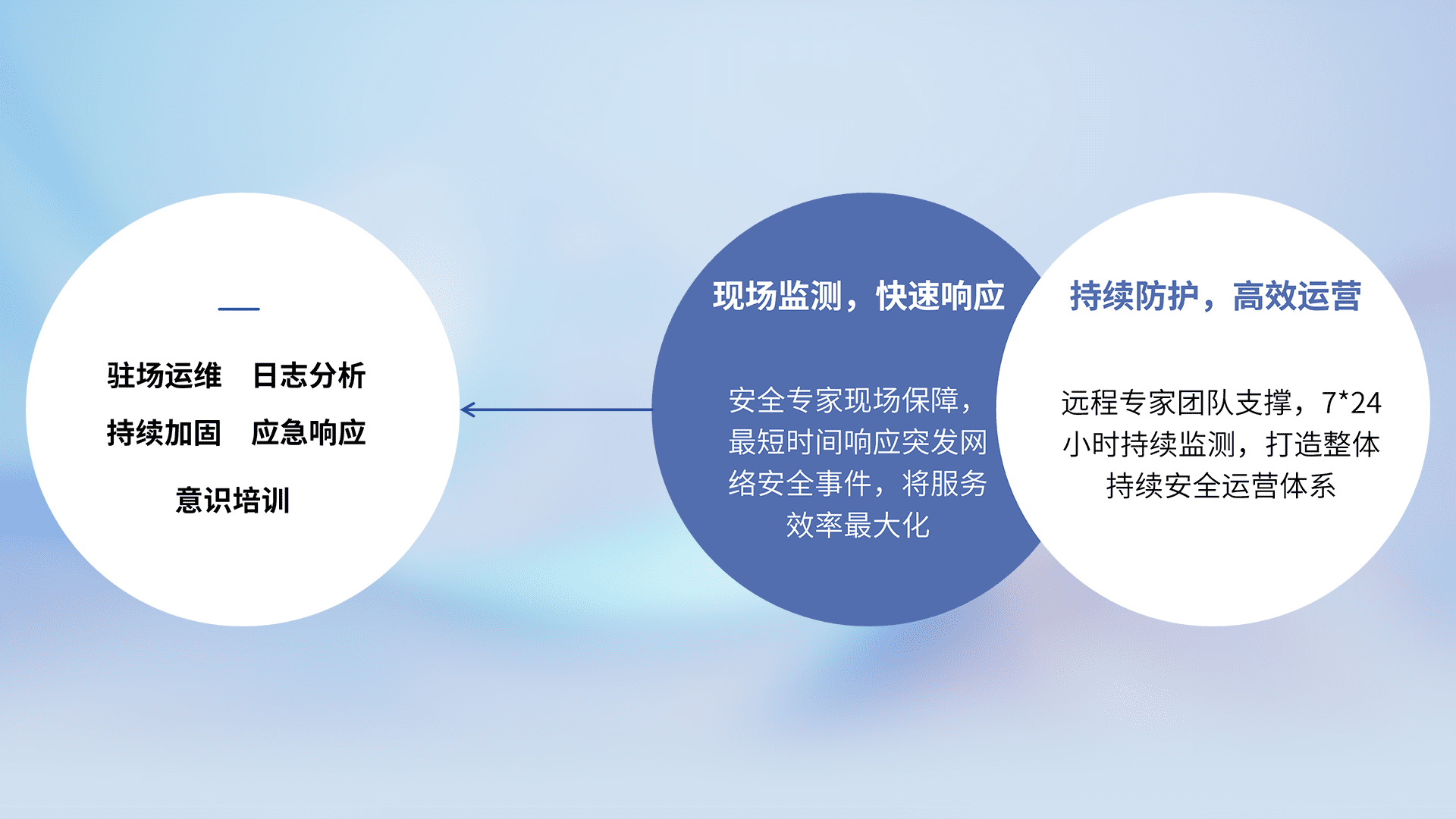 针对客户行业特性,,,,提供专属的一站式安全管理服务,,,帮助客户全面感知网络空间威胁,,,通过安全专家的线上、、、线下防护支持,,,实现风险闭环,,,将安全保障常态化,,,,为客户打造常态化安全运维运营服务。。。。